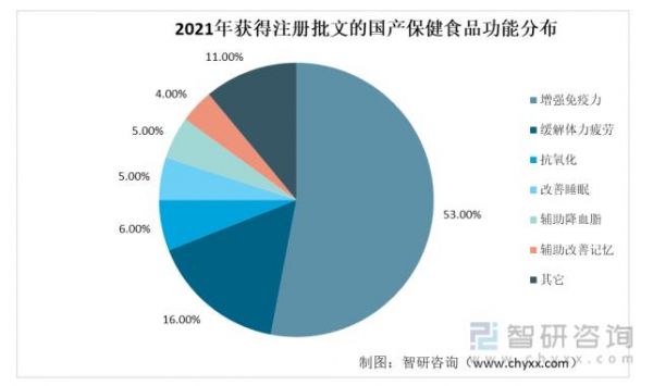 2021年獲得注冊(cè)批文的國(guó)產(chǎn)保健食品功能分布