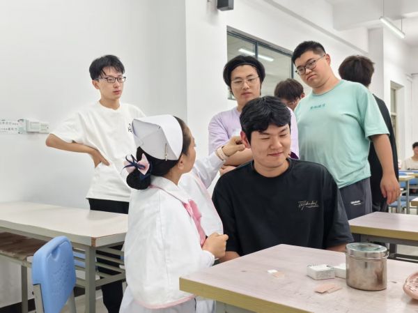 在講解結(jié)束后,武老師還為在場的同學們進行了刮痧和耳穴貼壓的實際操作演示。她一邊操作,一邊詳細講解每個步驟的注意事項和技巧,確保同學們能夠掌握這些方法。通過親身體驗,同學們不僅加深了對中醫(yī)護理治療的理解,也感受到了其在情緒管理中的顯著效果。
