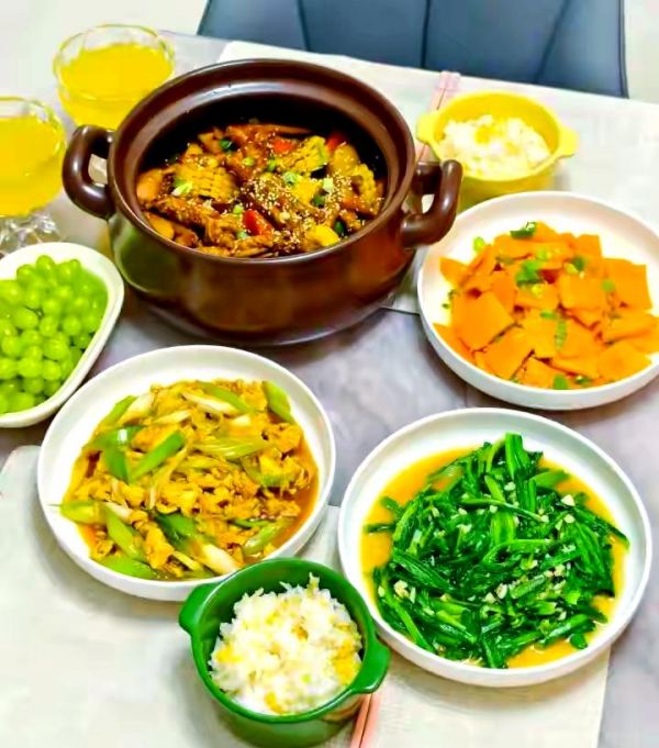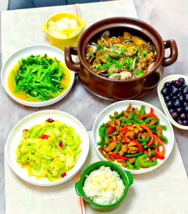 周三的晚餐繼續(xù)提供多樣化的營養(yǎng)搭配,包括花甲粉絲煲、彩椒牛肉、素炒萵筍等。