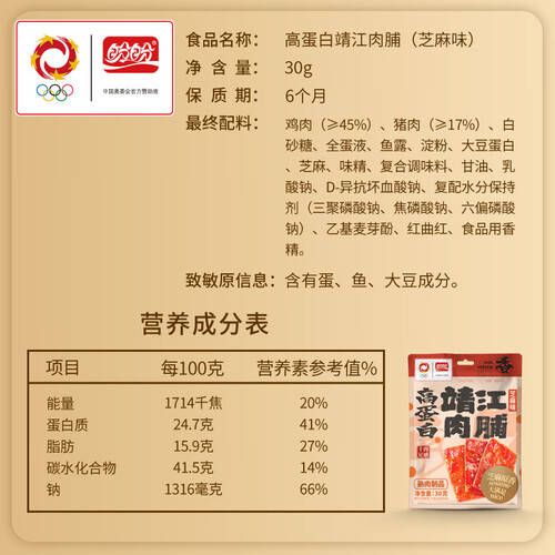而靖江肉脯則是這款組合中不可或缺的一部分。它的高蛋白質(zhì)含量(雞肉≥45%,豬肉≥17%)讓它成為運(yùn)動后的理想選擇。豐富的肉類成分不僅讓你感受到滿足感,更加速了身體的恢復(fù)。肉脯的芝麻味道獨(dú)特,既增添了風(fēng)味,又讓你在享受美食的同時,感受到來自自然的饋贈。