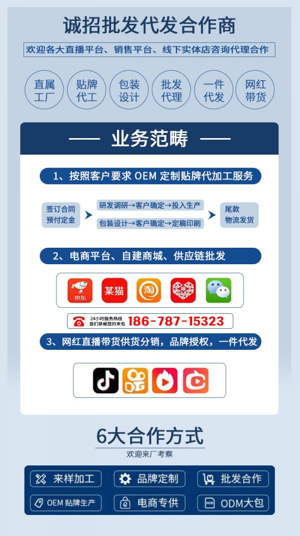 我公司以經(jīng)營保健食品生產(chǎn)、食品生產(chǎn)、液飲生產(chǎn)特醫(yī)特膳生產(chǎn)、保健品生產(chǎn)及化妝品生產(chǎn),包括潔面水、乳、霜、膏面膜等GMP認(rèn)證及國食健字批準(zhǔn)文號(hào)、OS、國妝特字號(hào)等;生產(chǎn)劑型覆蓋了軟膠囊、片劑、粉劑、顆粒劑、液飲和代用茶劑等劑型,獲批了近20個(gè)保健食品,QS食品2000多個(gè),工廠引進(jìn)進(jìn)口設(shè)備60余臺(tái),年產(chǎn)量可達(dá)1000萬噸以上。公司推出補(bǔ)鈣系列、補(bǔ)鋅系列、補(bǔ)血系列、維生素系列、泡騰片系列、小分子膠原蛋白肽系列、咖啡系列代餐奶昔系列、果蔬粉系列、顆粒劑、軟膠囊等系列產(chǎn)品;