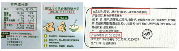 特別注意區(qū)分的是,部分商家宣稱自家產(chǎn)品是“符合國標(biāo)”,實(shí)則是符合普通食品的國家標(biāo)準(zhǔn),而不是嬰幼兒輔助食品國家標(biāo)準(zhǔn)。