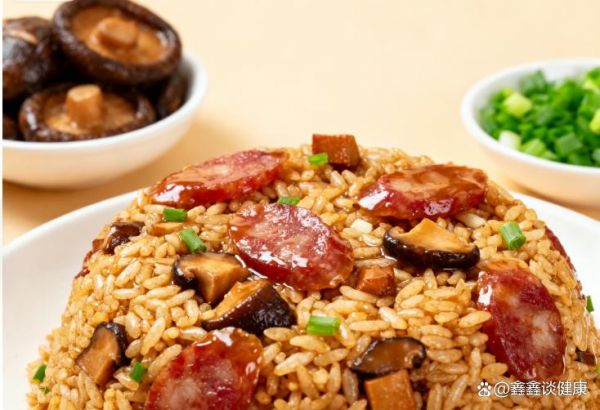 做法:香菇泡發(fā)切丁,臘腸切片,熱油煸炒臘腸出油,加入香菇丁和胡蘿卜丁炒香,倒入米飯壓散大火翻炒,加生抽和鹽調(diào)味,最后撒蔥花拌勻,關(guān)火后再燜 30 秒更入味。