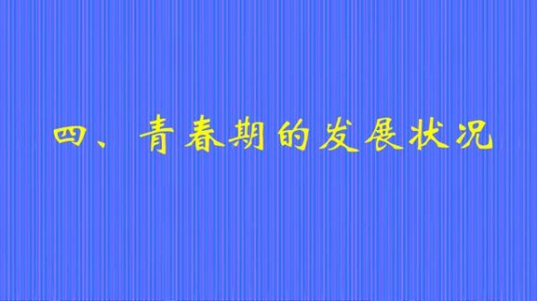 這個時期,孩子身體的各個方面都在迅速發(fā)育并逐漸達到成熟,是少年身心變化最為明顯的時期,孩子的身體、外貌、行為模式、自我意識、交往與情緒特點、人生觀等,都脫離了兒童的特征而逐漸成熟起來,更為接近成人。在生理方面,男孩會出現(xiàn)遺精,(通常在夜間睡眠時);女孩會出現(xiàn)月經(jīng)初潮,(第一次來月經(jīng))。由于性功能的成熟,使少年具有了與兒童期明顯不同的社會、心理特征。從而導(dǎo)致在生理、心理上發(fā)生重大的突然變化的時期,它是決定人一生的生理、心理、性格、智力、人格、個性發(fā)展,以及世界觀、人生觀形成的關(guān)鍵時期。