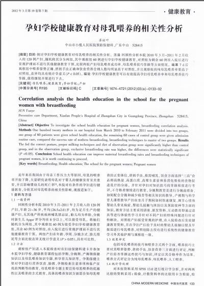 論文下載:孕婦學(xué)校健康教育對(duì)母乳喂養(yǎng)的相關(guān)性分析