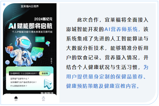 澎城AI膳食營養(yǎng)師和宜萊福開展合作 開啟AI健康定制化服務(wù)新生態(tài)