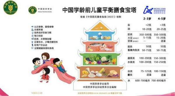 食物多樣化,建議每天食物種類數(shù)達(dá)到12種以上,每周達(dá)到25種以上,烹調(diào)油和調(diào)味品不計算在內(nèi)。按照餐次,建議早餐4-5種;午餐5-6種;晚餐4-5中;加餐1-2種。按照食物大類建議:谷類、薯類及雜豆類食物平均每天3種以上,每周5種以上;蔬菜、菌藻及水果類食物平均每天4種以上,每周10種以上;魚、蛋、畜肉及禽肉類食物平均每天3種以上,每周5種以上;奶、大豆及堅果類食物:平均每天有2種。每周5種以上。各類食物的每日推薦用量可見中國學(xué)齡前兒童平衡膳食寶塔。