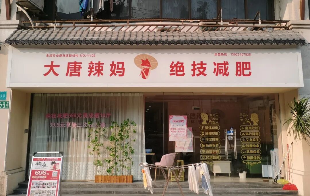招牌上的“大唐辣媽”,是2018年成立、河南優(yōu)姿健康管理咨詢有限公司旗下的品牌,乘著減肥塑形產(chǎn)業(yè)的東風(fēng),4年內(nèi)開了13000多家加盟店。不僅在國內(nèi)遍地開花,新加坡、韓國、美國等發(fā)達(dá)國家也出現(xiàn)了它的身影。