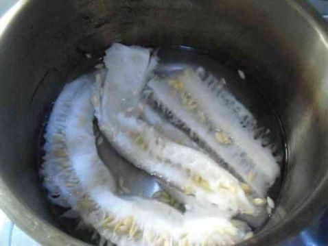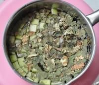 3、鍋里燒開水,放入荷葉和冬瓜瓢碎小火熬制5分鐘。