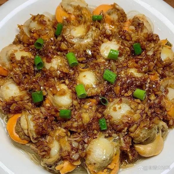 (3) 倒在粉絲扇貝上,大火蒸12分鐘,撒上蔥花即可。