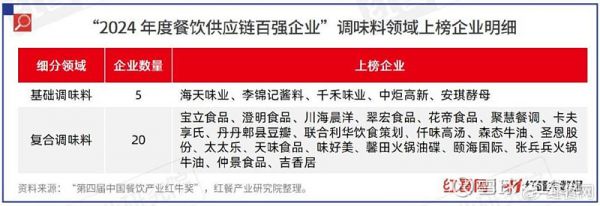 在“第四屆中國餐飲產(chǎn)業(yè)紅牛獎”細分榜單“2024年度餐飲供應鏈百強企業(yè)”中,餐飲調味料企業(yè)入圍了25家,其中復合調味料企業(yè)就有20家,比如圣恩股份、聯(lián)合利華飲食策劃、頤海國際、川海晨洋、翠宏食品、仟味高湯、森態(tài)牛油、天味食品、馨田火鍋油碟、吉香居等。