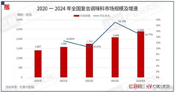 近年來,隨著我國居民的飲食需求越來越多元以及國內餐飲大盤的持續(xù)增長,調味料市場得到了較快發(fā)展。紅餐大數(shù)據(jù)顯示,我國調味料的市場規(guī)模從2014年的2,595 億元增長至2023年的5,927億元,預計2024年市場規(guī)模有望達到6,525億元。