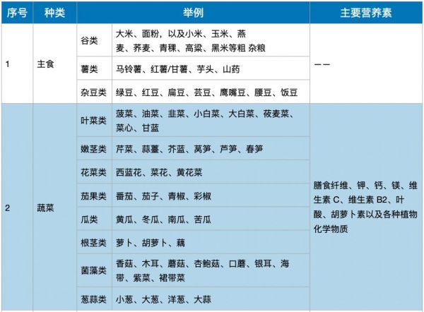 表 2-2 日常食物分類、舉例和提供的主要營養(yǎng)素