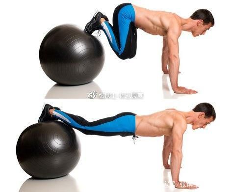 俯臥,小腿放于瑜伽球上,用力固定住瑜伽球防止左右滾動(dòng),再緩慢進(jìn)行屈膝屈髖收腹訓(xùn)練。每組10~15次,做3組。
