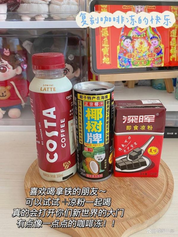 一點點同款咖啡凍,兩個混起來就是生椰拿鐵的味道,加上涼粉凍,是個很神奇的搭配,不過出奇的好喝。