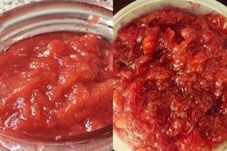 第四步,把山楂泥和冰糖水?dāng)嚭途鶆颍缓箝_小火,讓它們慢慢的熬,時(shí)不時(shí)攪拌一下防止粘鍋,然后等熬到山楂膏已經(jīng)成了一個(gè)比較黏稠的狀態(tài),如果拿一根勺子去舀的話,會(huì)有很厚很厚的一坨坨掉下來,那么這個(gè)狀態(tài)就已經(jīng)熬的差不多了。