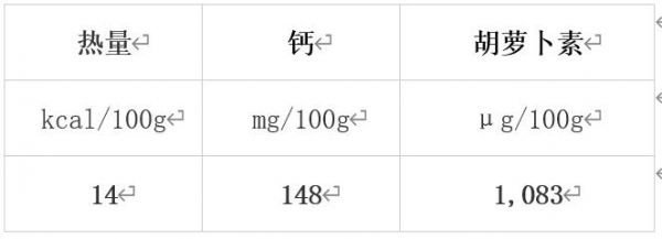 它熱量低,鈣含量很高。每100g里含有148mg的鈣,是同等重量牛奶的1.4倍。如果是黑油菜,鈣含量更高,100g含有191mg的鈣。