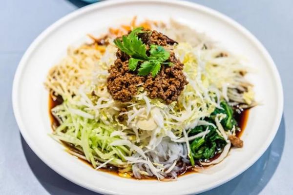 3、放適量鹽、生抽、雞精、醋、芝麻調(diào)味,將所有食材調(diào)勻即可。