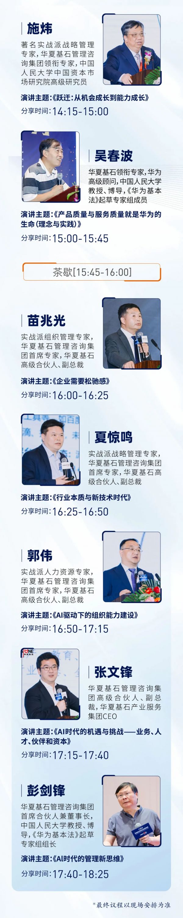 3.華夏基石大師塾企業(yè)家學(xué)員、復(fù)盤華為研修班企業(yè)家學(xué)員、華夏基石首席人才官CHO學(xué)員(限本人1人,團(tuán)隊(duì)學(xué)員企業(yè)限2人),超出名額一律按照12800元/人付費(fèi),且每家企業(yè)總參會(huì)人數(shù)不得超過2人;