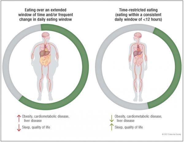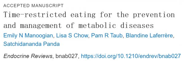 2021年9月23日,Satchidananda Panda 教授團(tuán)隊(duì)在 Endocrine Reviews 期刊 (IF=19.9) 發(fā)表論文,帶來了間歇性禁食的最新觀點(diǎn): 除了幫助人們更好地控制體重、糖尿病和心臟病等疾病外,間歇性禁食還有助于改善整體睡眠質(zhì)量。在這項(xiàng)新研究中,研究人員介紹了晝夜節(jié)律晝夜節(jié)律紊亂限時(shí)進(jìn)食的概念,并回顧了有關(guān)限時(shí)進(jìn)食潛在機(jī)制的研究以及最近的人類研究,并提出了一些未來將限時(shí)飲食轉(zhuǎn)化為預(yù)防和管理代謝疾病手段的觀點(diǎn)。
