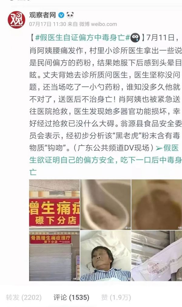7 月 11 日,假醫(yī)生欲證明自己的偏方安全,吃下一口后中毒身亡。