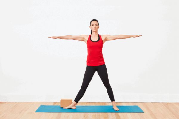 首先雙腿并攏站直,然后左腿向左側(cè)邁出一步,讓雙腿的寬度超過(guò)肩膀,之后身體依然保持繃直,將雙手向左右兩側(cè)抬起伸直,平行于地面,然后向右側(cè)彎曲身體。