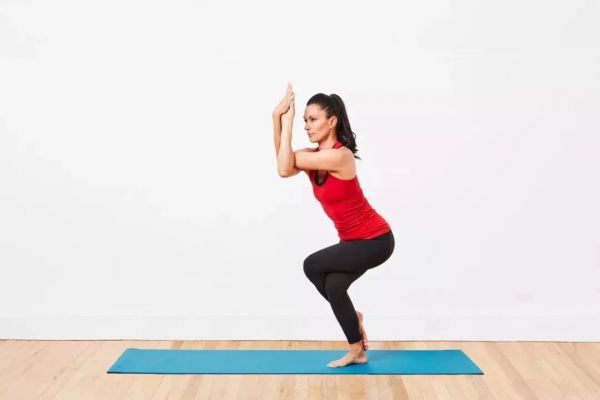 樹(shù)式,首先保持站直的姿勢(shì),然后將左腿纏繞在右腿上,讓右腿慢慢下蹲,維持住身體的平衡,上身向前略微傾斜,臀部重心降低,雙手在胸前交纏在一起,然后抬起來(lái)一些。