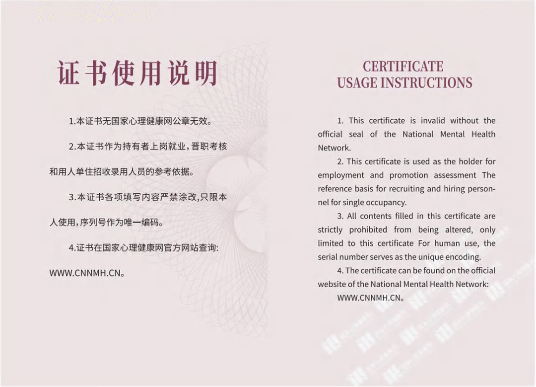 日常學(xué)習(xí)由線上學(xué)習(xí)課時(shí)數(shù)及學(xué)習(xí)效果評(píng)價(jià)組成。平時(shí)學(xué)習(xí)成績(jī)通過者方可參加統(tǒng)一組織的證書考試。學(xué)習(xí)完課程且考試通過者可獲得由國(guó)家心理健康網(wǎng)頒發(fā)的“心理咨詢師專業(yè)技能證書”