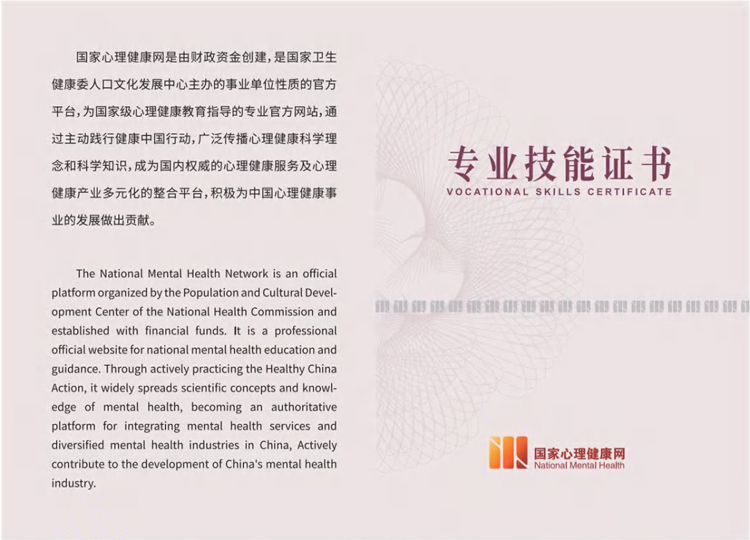 為滿足社會(huì)各界學(xué)習(xí)心理健康知識(shí)和心理咨詢崗位技能的需求,經(jīng)相關(guān)研究機(jī)構(gòu)提請(qǐng),國(guó)家心理健康網(wǎng)從政策導(dǎo)向及培訓(xùn)內(nèi)容等方面紿予了監(jiān)管和相關(guān)審核支持,以保證學(xué)員通過參加技能培訓(xùn)課程,為專業(yè)成長(zhǎng)和職業(yè)發(fā)展打下心理咨詢方面的良好基礎(chǔ)。