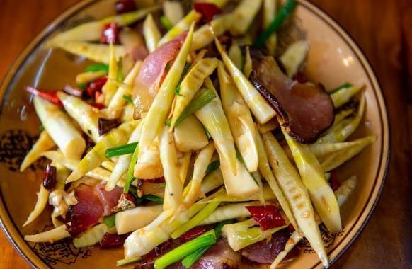 炒制時,將臘肉冬筍炒在一起,鎖住了冬筍的鮮美,并將臘肉的咸味融入到菜品中,增添了一定的風味。臘肉經(jīng)過煮熟后,肉質更加鮮嫩多汁,與冬筍的口感相得益彰。蔥、姜、蒜等調料的加入,不僅提升了整個菜品的香氣,還增加了口感的層次。