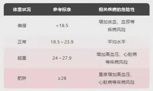 建議 BMI 最好控制在 18.5-23.9 的范圍內(nèi),BMI 在 25 及以上的人群患心腦血管疾病的風(fēng)險(xiǎn)較大。