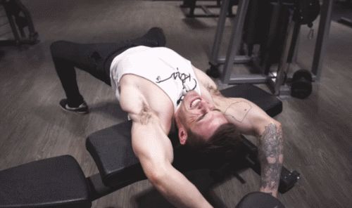 仰臥在平凳上,肩部與頭部支撐身體,雙腿屈膝雙腳踩地,臀部懸空,腹部收緊,雙手握住啞鈴舉起胸前,雙臂伸直,手肘微屈保持身體穩(wěn)定,慢慢向后將啞鈴下落至頭后方,頂點稍停,伸展背部肌群然后背部肌群發(fā)力將啞鈴提至胸前