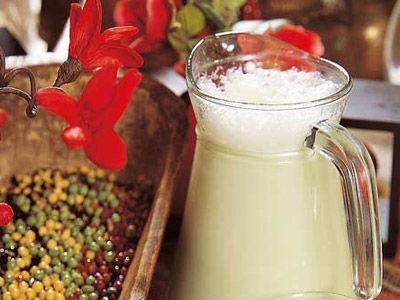 注:進(jìn)行溫補(bǔ)者不宜飲用,以免失去溫補(bǔ)功效;脾胃虛寒者不宜過(guò)多飲用,以防腹瀉。網(wǎng)罩中的豆渣加白糖調(diào)成豆沙,十分可口。