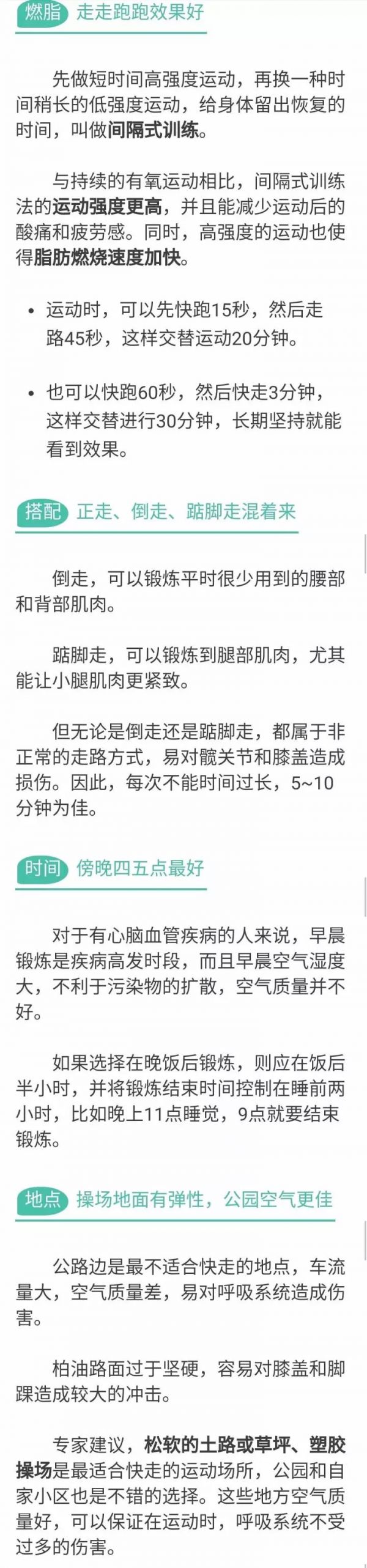 快走對心腦血管、呼吸系統(tǒng)有著很好的鍛煉效果,對身體的損害也最小,適合老年人和有慢性疾病的人。