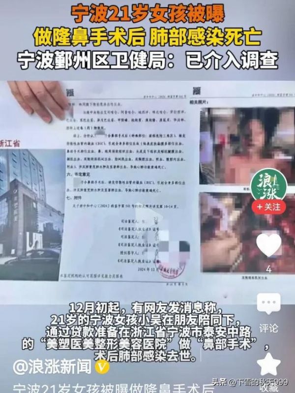 太慘烈!浙江21歲花季少女做隆鼻手術(shù)后死亡!當?shù)匦l(wèi)健局介入調(diào)查