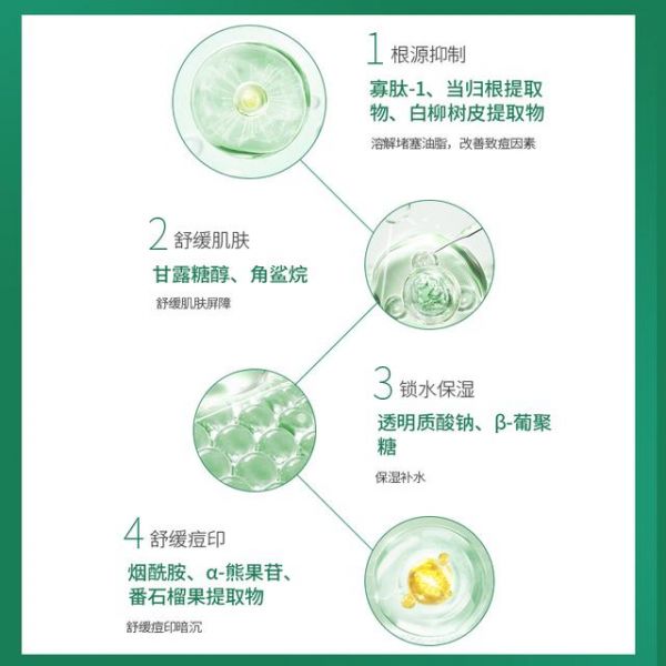簡(jiǎn)如祛痘凍干粉精華蘊(yùn)含聚谷氨酸、3-鄰-乙基壞血酸、水楊酸、煙酰胺、角鯊?fù)?、a-熊果苷、番石榴果提取物、當(dāng)歸根提取物、白柳樹皮提取物、透明質(zhì)酸鈉北美金縷梅提取物、海藻糖、苦參提取物、茶葉提取物等專利成分提取,能夠從根源抑制痘痘的生成,能夠加快痘痘成熟剝脫,淡化痘印,平滑肌膚,能夠調(diào)節(jié)肌膚油脂分泌,達(dá)到水油平衡的效果,從而持久抑痘。