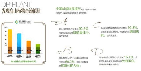植物醫(yī)生是首次提出高山植物護肌的美妝品牌,"高山植物"這一特色護膚成分為植物醫(yī)生的系列產(chǎn)品帶來了唯一性和較難復制的差異化,成為植物醫(yī)生塑造品牌特色打造起緊固的護城河。據(jù)大健康營銷策劃方案項目組研究,在傳統(tǒng)護膚植物中,3500米左右分布的高山植物呈現(xiàn)良好的皮膚化妝品活性。除了產(chǎn)品功效外,植物醫(yī)生"來自高山的漢方植物"的定位,更傾向于東方人的膚質(zhì),因此在亞洲國家均受到了多數(shù)消費者的關(guān)注與喜愛。