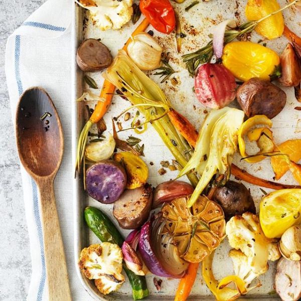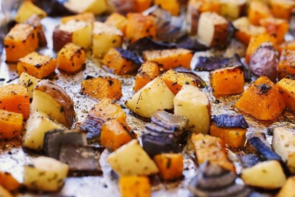 烘烤時間差不多的蔬菜可以放同個盤里烤,比如說白花椰菜配綠花椰菜、胡桃南瓜搭土豆。如果一個烤盤放不下,千萬別硬擠,拿出另一個烤盤裝。