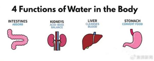 “你身體的每個主要系統(tǒng),包括心臟、大腦和肺部都依賴于水。”在史密斯博士看來,水在人體內(nèi)有4個最為基本的功能:促進腸道吸收、維持腎臟酸堿平衡、促進肝臟凈化血液,以及促進胃消化。