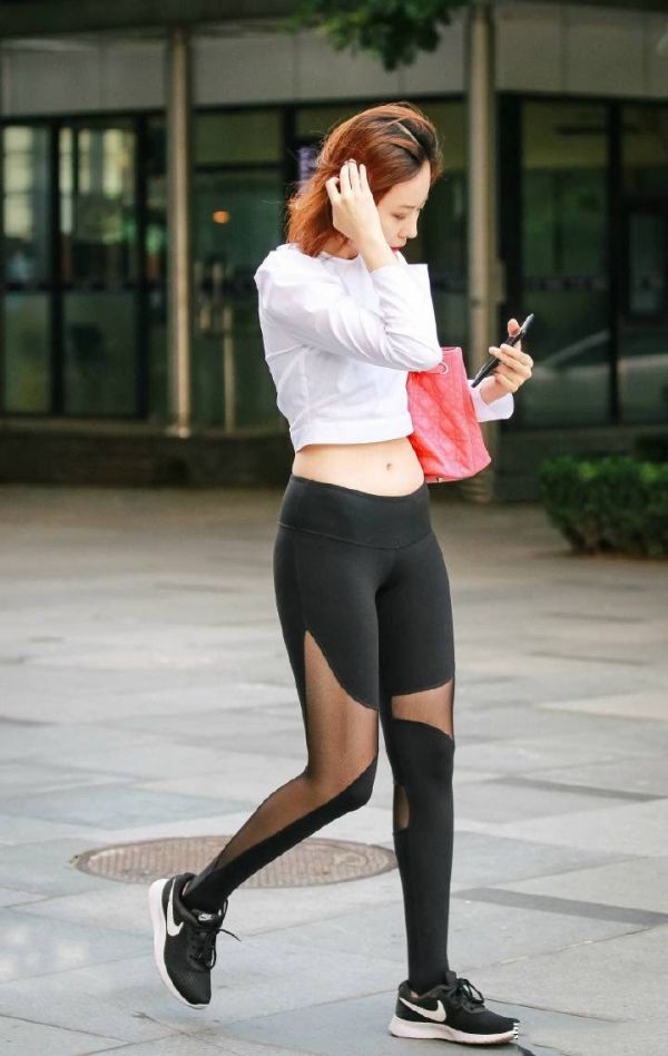 值得一說的是小姐姐身穿的這款健美褲,半透明的拼接版型,近年來很是受歡迎,特別是在一些健身圈子內(nèi),既方便運動透氣排汗,又具濃厚的時尚前衛(wèi)元素,這樣一條褲子,就算日常穿搭也不會比其它褲裝效果來的差。