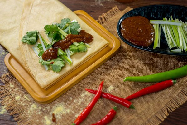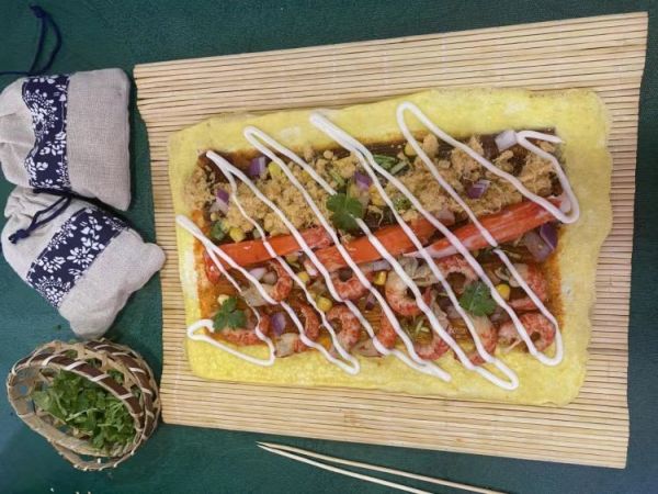 風(fēng)味簡介:純糧制作、現(xiàn)用現(xiàn)磨,發(fā)揮糧食本源味道。甜,黃豆經(jīng)過發(fā)酵,使煎餅中有了談?wù)劦奶鹞?,甜卻無糖,更健康。軟,原料混合后經(jīng)發(fā)酵處理,保證了攤制的煎餅柔軟適中。薄,手工攤制,薄如紙,攤制過程勻、穩(wěn)、快的特點(diǎn)。精,傳統(tǒng)工藝流程精細(xì)化,員工培訓(xùn)上崗,細(xì)節(jié)決定質(zhì)量。