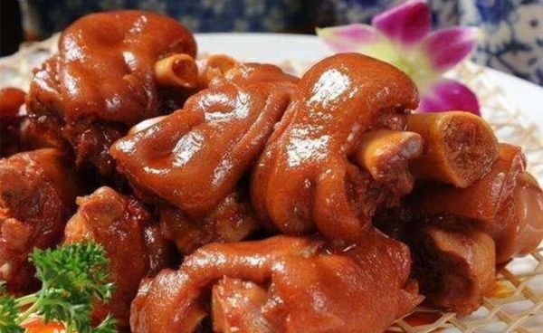 風(fēng)味簡介:北鎮(zhèn)豬蹄外形完整、皮肉飽滿、色棗紅發(fā)亮,素有“東北小熊掌”的美稱,具有入口香而不膩、咀嚼筋道有勁的特點(diǎn)。北鎮(zhèn)豬蹄制作加工技藝起興于清道光年間,至今已傳承近200年。北鎮(zhèn)豬蹄制作技藝主要包括選料、拔毛、噴燒、修蹄、煮制、熏制和涂油等多個(gè)工序,其中,松香拔毛法和煮制過程的老湯配制是制作的關(guān)鍵。
