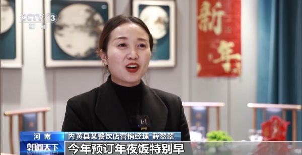內(nèi)黃縣某餐飲店營銷經(jīng)理 薛翠翠:今年預訂年夜飯?zhí)貏e早,尤其是我們的老客戶在10月份已經(jīng)開始預訂,我們有30多個包房,從年初一到初六,到目前為止預訂量已經(jīng)達到80%。