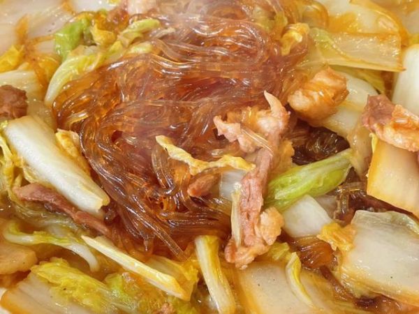 1、五花肉清洗干凈切成片,白菜清洗干凈后切成小塊,粉條提前泡軟。