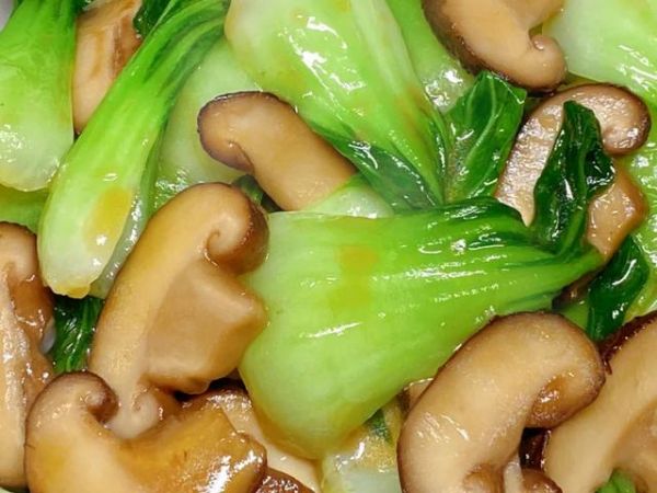 準(zhǔn)備食材:香菇,油菜,蒜片。