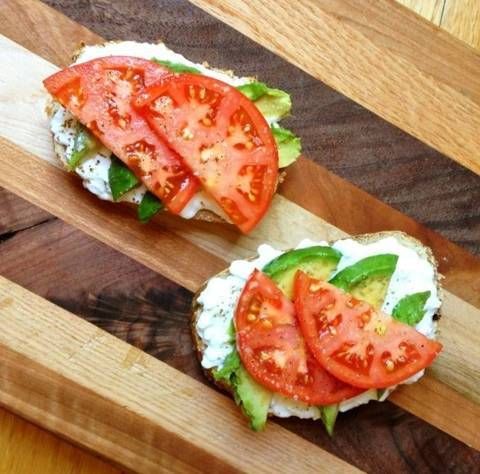 從下到上,總共有四層,可不要放錯(cuò)順序了!依次是吐司——芝士——牛油果——番茄。雖然是素的三明治,但一定能讓你大飽口福的同時(shí)補(bǔ)充足量的蛋白質(zhì)!