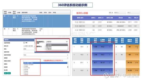 很多企業(yè)的360評(píng)價(jià)并沒有達(dá)到理想的效果,往往是由于評(píng)價(jià)過程中存在信息誤差,影響了評(píng)價(jià)結(jié)果的參考價(jià)值所致。為了應(yīng)對(duì)這些挑戰(zhàn),企業(yè)可借助華恒智信研發(fā)的360評(píng)估系統(tǒng),盡量量化描述評(píng)價(jià)指標(biāo),強(qiáng)化對(duì)認(rèn)知的宣貫培訓(xùn);利用日常數(shù)據(jù)作為評(píng)分依據(jù),自定義評(píng)價(jià)關(guān)系;借助“匯率”修正工具鑒別失真評(píng)價(jià),校準(zhǔn)評(píng)價(jià)數(shù)據(jù)。