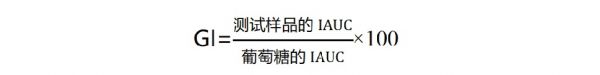 GI的計算:曲線下面積(IAUC)。IAUC是測定血糖后,以0分左右的血糖數值為基準,只利用反應曲線的基準線以上區(qū)域。GI計算公式如下: