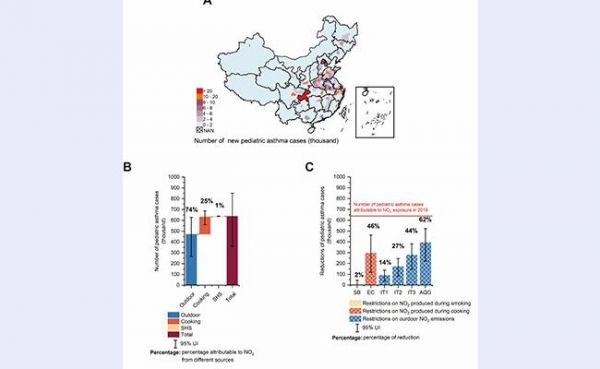 清華新聞網(wǎng)5月6日電 據(jù)全球疾病、傷害和風(fēng)險(xiǎn)因素研究(Global burden of Diseases, Injuries, and Risk factors Study),空氣污染是造成全球疾病負(fù)擔(dān)的五大首要風(fēng)險(xiǎn)因素之一。二氧化氮(NO2)是一種常見(jiàn)的空氣污染物,與全球每年上百萬(wàn)的兒童新發(fā)哮喘病例有關(guān)。2021年9月22日,世界衛(wèi)生組織(World Health Organization,WHO)發(fā)布了最新的空氣質(zhì)量指南,將NO2年平均濃度標(biāo)準(zhǔn)由舊標(biāo)準(zhǔn)40μg/m3緊縮到為10μg/m3,且該標(biāo)準(zhǔn)同時(shí)適用于室內(nèi)和室外環(huán)境。室外NO2常被視作與交通有關(guān)的空氣污染的標(biāo)志物之一,而住宅內(nèi)烹飪過(guò)程中燃?xì)獾娜紵?、香煙的燃燒也?huì)產(chǎn)生大量NO2。隨著我國(guó)城市化進(jìn)程的發(fā)展,室內(nèi)外NO2污染所引發(fā)的健康問(wèn)題越來(lái)越嚴(yán)峻,采取有效的政策限制室內(nèi)和室外NO2的排放,對(duì)降低環(huán)境風(fēng)險(xiǎn)因素所帶來(lái)的兒童哮喘疾病負(fù)擔(dān)至關(guān)重要。