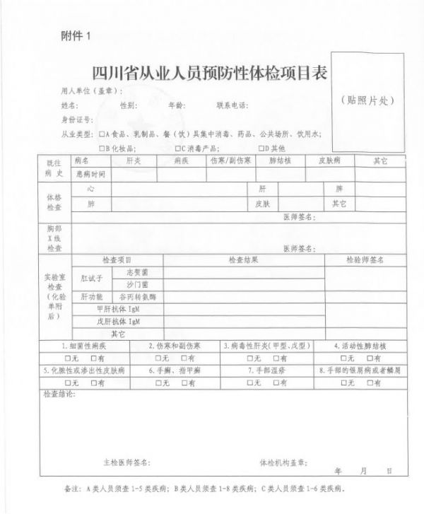 1.四川省從業(yè)人員預防性體檢項目表(見附件 1 )